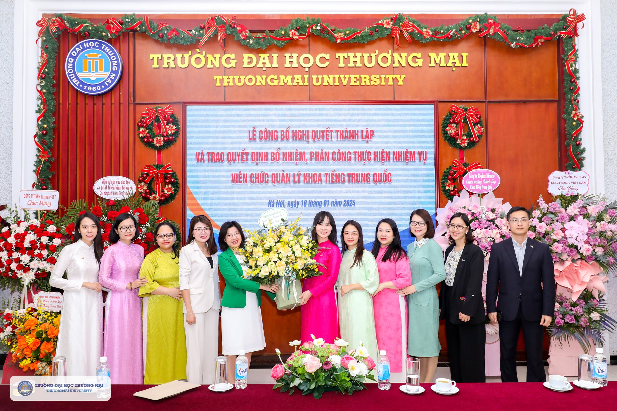 Cũng tại buổi Lễ, PGS,TS. Mai Thanh Lan – Trưởng phòng Tổ chức Nhân sự đã thừa ủy quyền của PGS,TS. Nguyễn Hoàng – Hiệu trưởng Nhà trường công bố các Quyết định về việc phân công công tác và bổ nhiệm viên chức quản lý cho các đồng chí. Cụ thể, đối với Khoa Tiếng Trung Quốc bổ nhiệm các viên chức quản lý như sau: TS. Phùng Thị Thu Trang giữ chức vụ Trưởng Khoa Tiếng Trung Quốc; TS. Đinh Thị Thu Hương phân công thực hiện nhiệm vụ Phó trưởng Khoa Tiếng Trung Quốc; TS. Nguyễn Thị Minh Ngọc giữ chức vụ Trưởng bộ môn Lý thuyết tiếng Trung Quốc, Khoa Tiếng Trung Quốc; TS. Nguyễn Thị Thu Trang giữ chức vụ Trưởng bộ môn Thực hành tiếng Trung Quốc, Khoa Tiếng Trung Quốc; ThS. Nguyễn Thị Xuân phân công thực hiện nhiệm vụ Phó Trưởng bộ môn Lý thuyết tiếng Trung Quốc, Khoa Tiếng Trung Quốc; ThS. Tạ Thị Ngọc Bích phân công thực hiện nhiệm vụ Phó Trưởng bộ môn Thực hành tiếng Trung Quốc, Khoa Tiếng Trung Quốc.