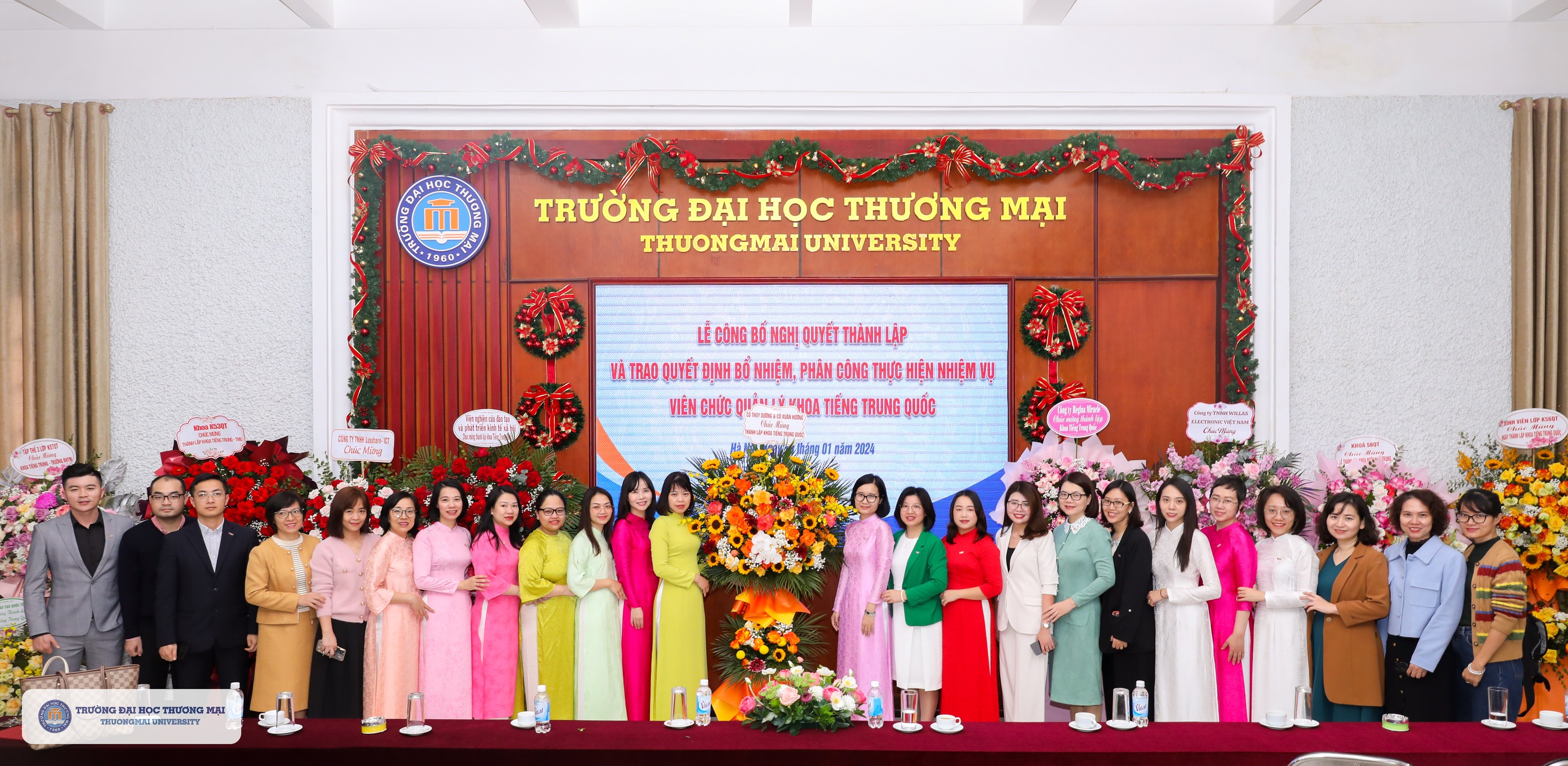 Sáng ngày 18/01/2024, tại Hội trường H3, Trường Đại học Thương mại long trọng tổ chức Lễ công bố Nghị quyết thành lập và trao quyết định bổ nhiệm, phân công thực hiện nhiệm vụ viên chức quản lý.