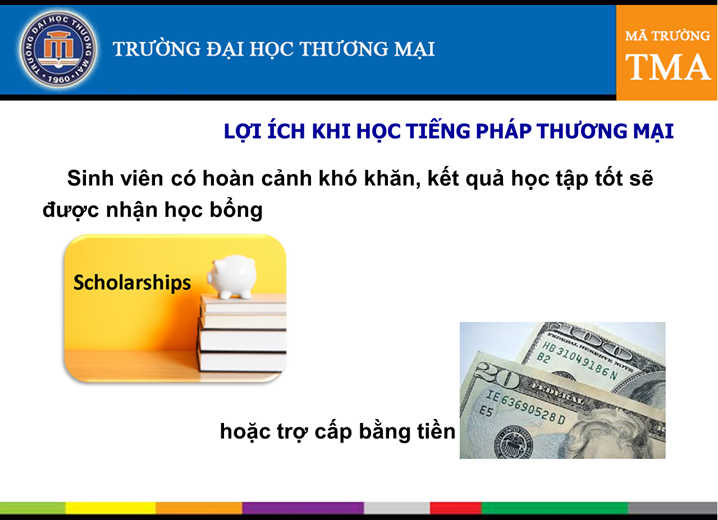 Bạn đang là sinh viên chuyên ngành tiếng Pháp Thương mại của Trường Đại học Thương mại? Hãy nộp đơn ngay từ hôm nay để được hưởng học bổng hỗ trợ của AUF (mức từ 150 USD đến 300 USD/năm) theo địa chỉ đường link: