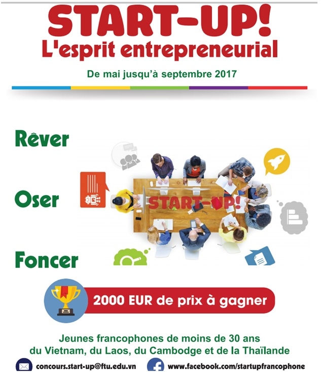 Trường Ngoại thương Hà Nội, phối hợp với tổ chức Đại học Pháp ngữ AUF (AUF) tổ chức lần đầu tiên cuộc thi "Start-up! Tinh thần doanh nhân "cho giới trẻ sử dụng tiếng Pháp dưới 30 tuổi. Cuộc thi nhằm mục đích tạo ra các mối quan hệ giữa giới học giả và giới trẻ. Đồng thời nảy sinh những ý tưởng kinh doanh sáng tạo giữa các học sinh và sinh viên tốt nghiệp từ 4 quốc gia: Việt Nam, Lào, Campuchia và Thái Lan.